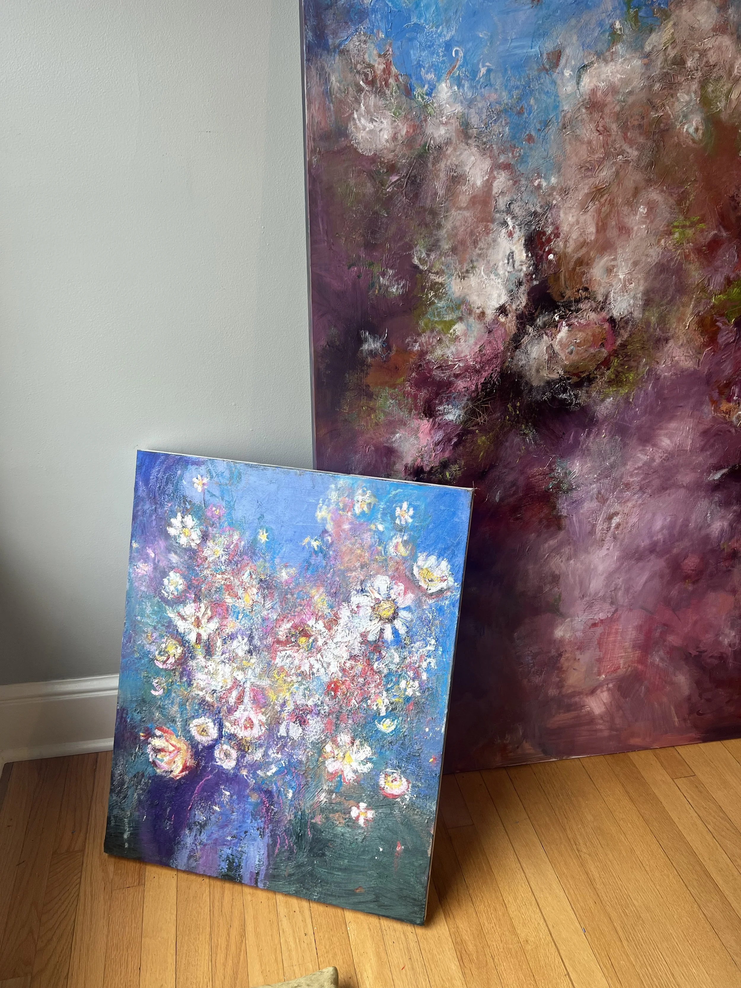 A little behind the scenes shot (all the rooms in my house are filled with paintings!) the next few days will be spent photographing, titling, signing and adding hanging hardware to all my new work being showcased and graciously hosted by Sarah and her team at Seattle Art Source. It feels so good to see all my work come together after months of painting! the culmination of energy is always exciting…